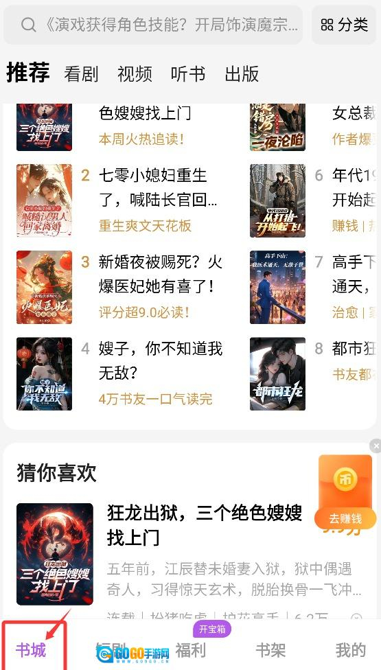 2、书城页面依据题材与热度呈现全站小说资源,提供多维度筛选功能,同时支持编辑推荐专区的浏览。