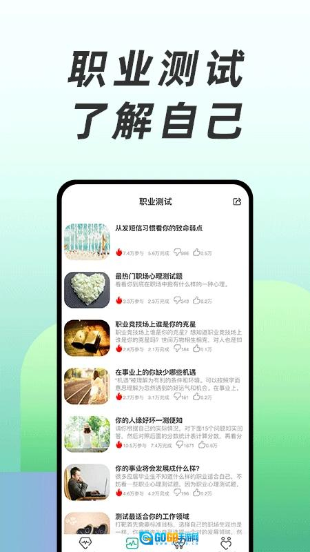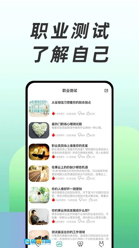 免费心理测试是一款非常优秀的心理在线咨询软件,拥有便携的心理测试功能,可以让用户选择各种测试题目,随地随地在线测试各种心理健康,还整合了多样化的心理文章,资讯等信息,随时随地自由了解查看,自由帮助用户解开心理压力,能完全满足所有使用需求,还提供实时咨询功能,允许用户自由选择各种专业的心理医生来答疑解惑,轻松关爱健康生活,给用户带来全面的服务,有需要的用户欢迎软件吧。