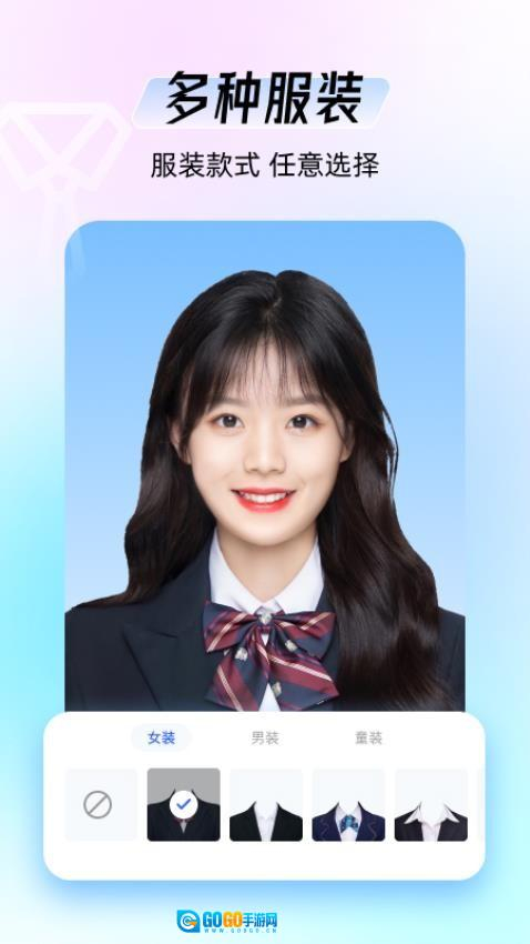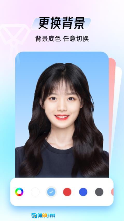 3、更换背景与服装:可从色板里挑选所需的背景颜色,还能在服装库中选择心仪的正装模板来完成虚拟换装。