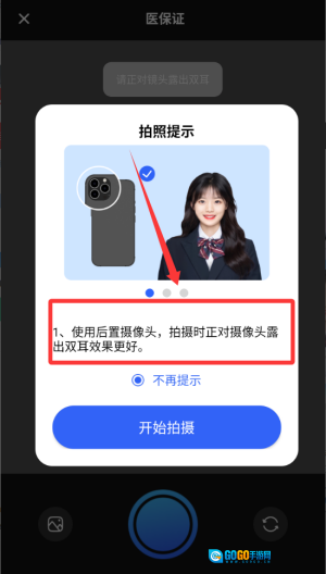 3、注意拍照提示,需要正对摄像头露出双耳。