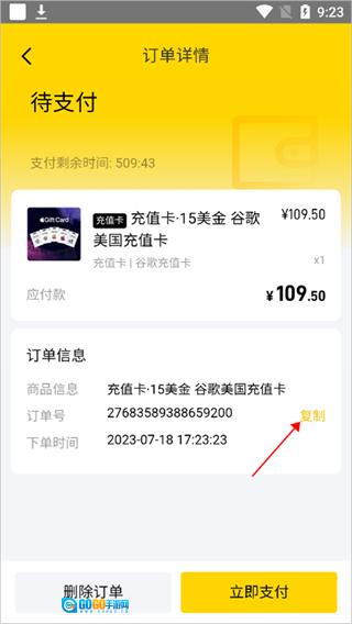 3、另一种微信支付方式是在App内复制订单ID号,发送给客服后即可办理微信支付业务。