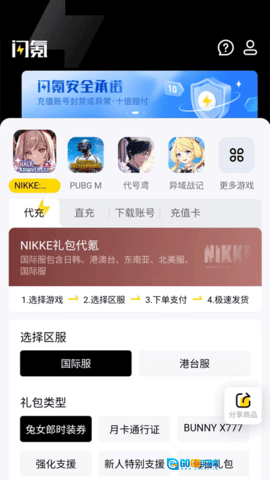 覆盖全球主流游戏充值需求,包括NIKKE、第七史诗等小众游戏也可正常充值。