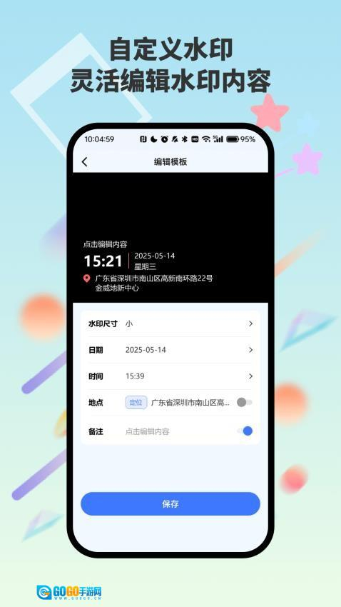 4、灵活编辑功能:水印内容支持高度自定义编辑,用户可自由调整文字、图标及布局,制作专属标识。