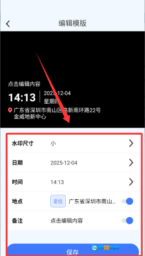 1、挑选并编辑水印:打开应用后,从水印模板库中挑选适宜的模板,再依据实际需求对其展示内容进行编辑。