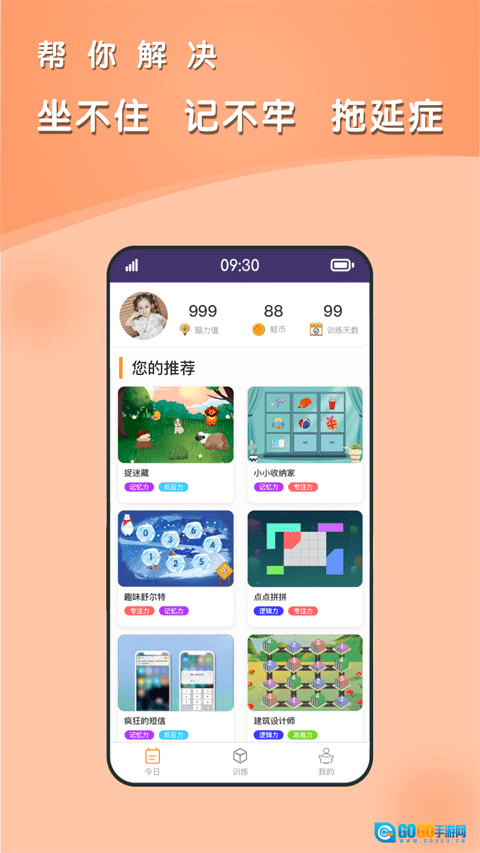 1、趣味闯关机制:把抽象训练转变为青蛙跳跃、数字迷宫、色彩匹配这类生动有趣的小游戏,让训练融入乐趣之中。 2、专注力专项模块:专门设置“抗干扰训练”“视觉追踪”“听觉分辨”等子项目,有针对性地提高学习和工作的效率。