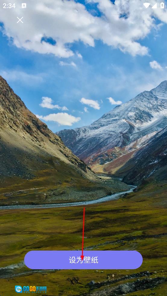 3、进入壁纸详情页后,点击页面下方的“设为壁纸”按钮,随后根据系统提示操作,即可完成山水壁纸的设置。