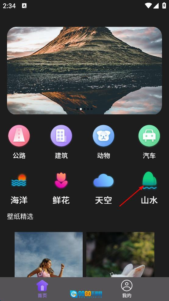 1、打开壁纸软件的首页,找到自己感兴趣且喜欢的分类图标并点击,进入壁纸列表页面。