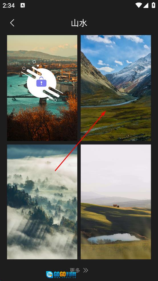 2、在山水壁纸列表中,选择你喜爱的山水壁纸,点击该壁纸即可进入详情展示页面。
