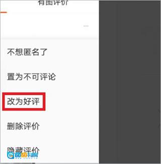 5、在弹出的选项里选择“改为好评”就能完成修改(温馨提示:中差评修改为好评的机会只有一次,并且要在评价发布后的30天内进行操作)