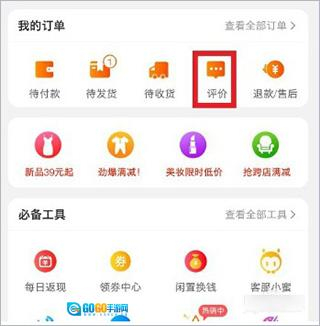 2、在“我的订单”板块中找到“评论”专区,点击进入该专区。