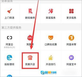 2、在工具页面里向下滑动,找到“我要开店”的图标并点击进入