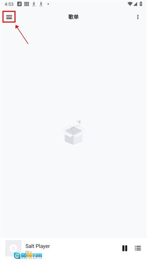 1、在手机上打开salt player应用,点击首页左上角的扩展按钮【三】