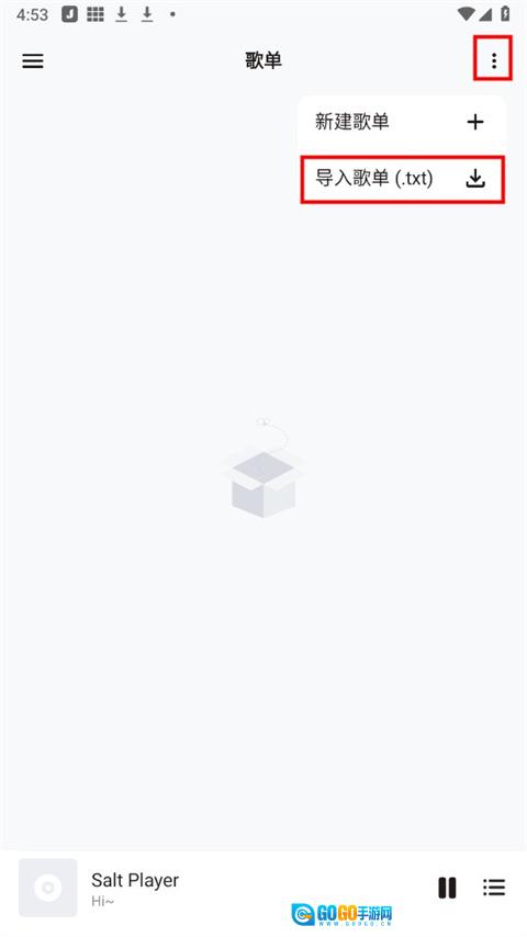 3、点击右上角的三个小点,点击导入歌单;