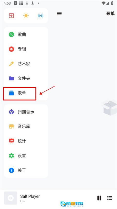 2、在展开的选项中,点击歌单;