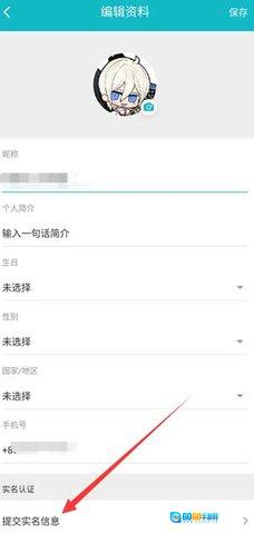 3.在编辑资料页面中,选择提交实名信息。