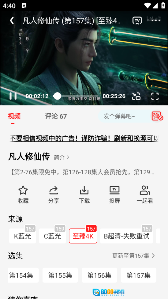 2、多源切换和高清播放:一部电影提供多个来源,支持一键切换,解决了播放失败的问题;支持4K和蓝光等高清图像质量,增强观看体验。