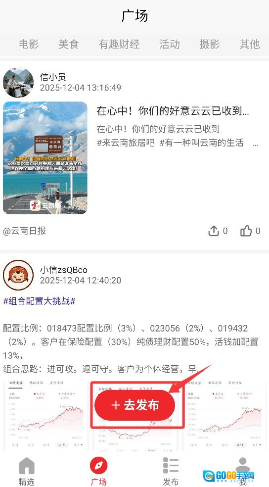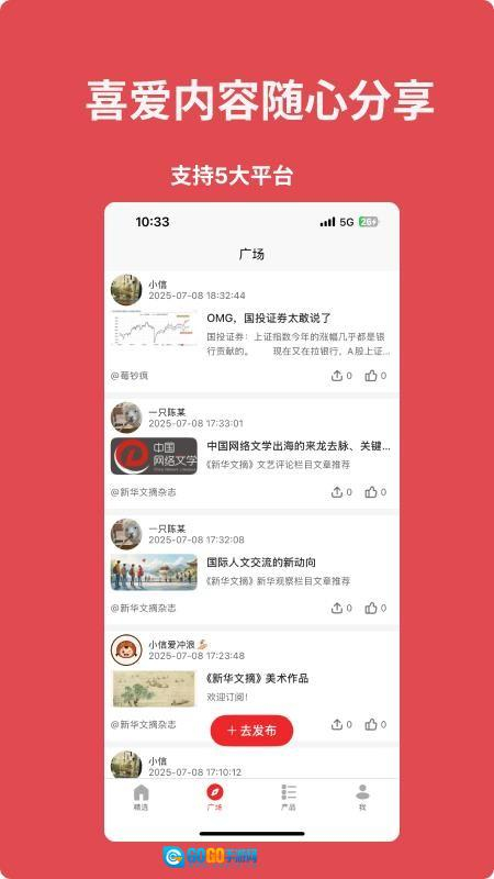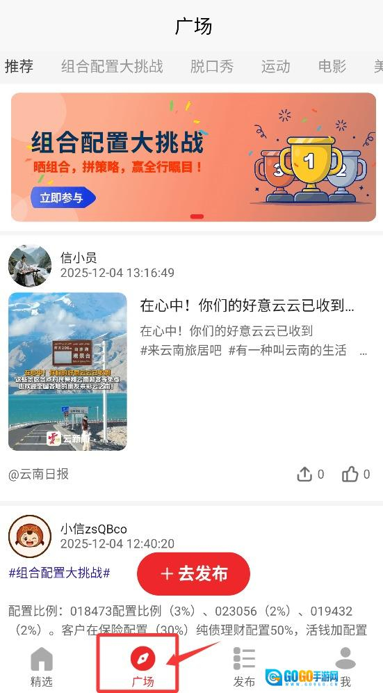 3、广场页面汇聚平台用户最新发布的公开内容,支持按热度或时间顺序浏览并参与互动。