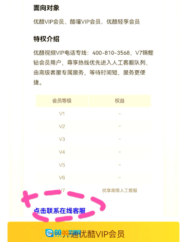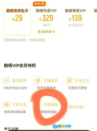 4、在“酷喵VIP会员”板块里,向右滑动页面,找到“专属客服”选项并点击它。