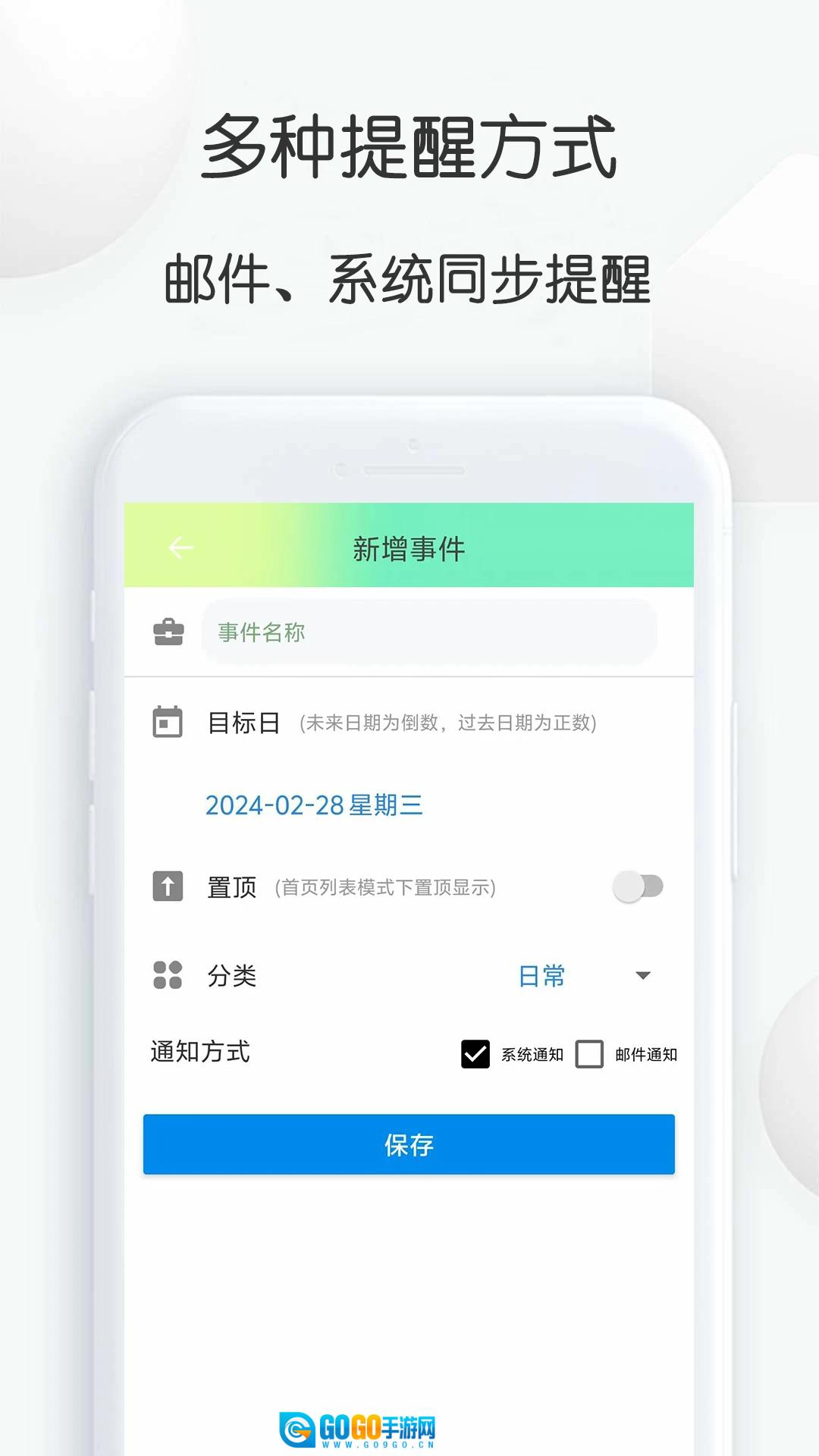 1、智能提醒:该软件提供多种提醒方式,包括提前提醒和重复提醒,以确保用户不会错过任何重要日期。