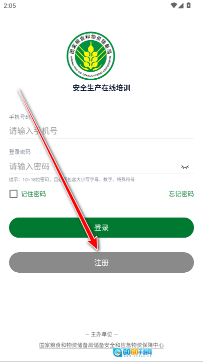 1、第一步,请打开安全生产在线培训平台,接着点击【注册】按钮;