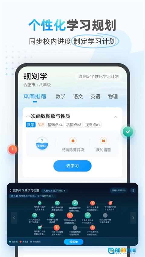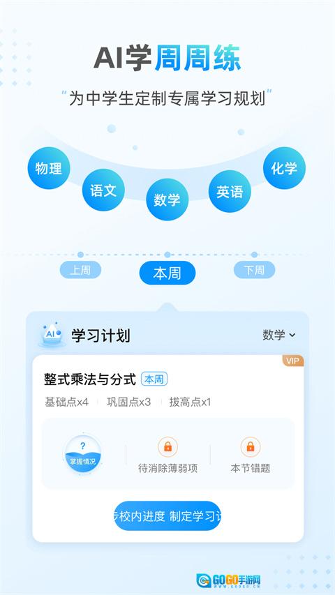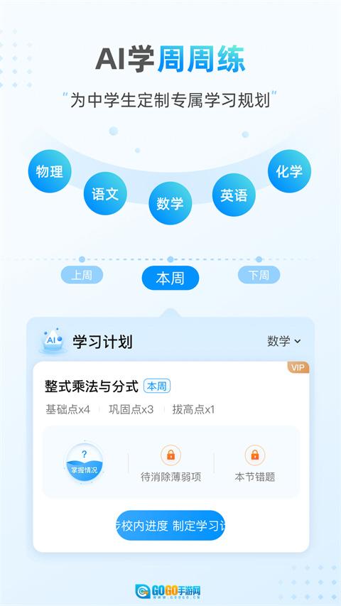 2、AI智能诊断功能:借助作业练习与测验环节,自动定位知识体系中的薄弱之处,进而智能推送适配个人情况的学习路径及针对性强化训练题目。