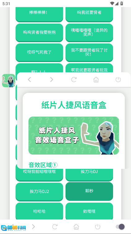 3、音效区域分为上下两部分,上方区域提供纸片人捷风的二次创作台词版本,下方区域则是英雄原始台词,供用户根据喜好选择播放。
