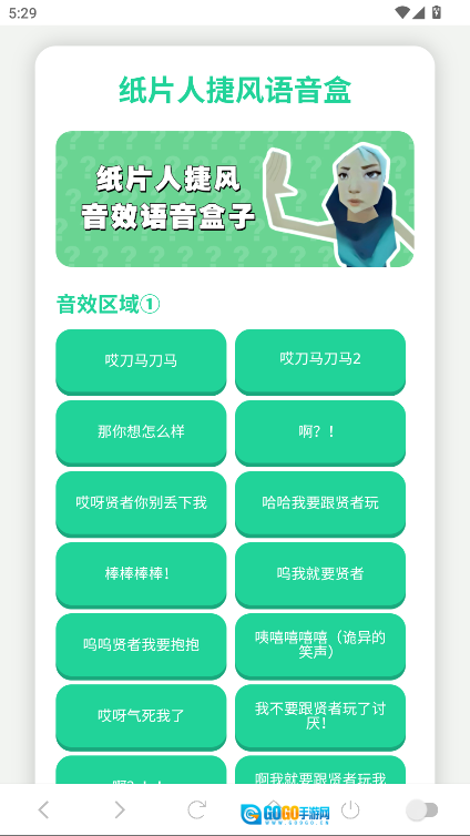 纸片人捷风语音盒是一款用于播放特定游戏角色语音的娱乐工具,它包含了角色原版台词以及网络上流行的二次创作版本。用户可以直接点击播放喜欢的语音片段,软件支持单次播放、循环播放以及收藏常用语录等功能。它还提供了悬浮窗模式,方便用户在操作其他手机应用时快速调用语音。