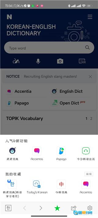 首先在本站并安装Naver词典软件,安装完成后打开软件即可看到词典主界面。