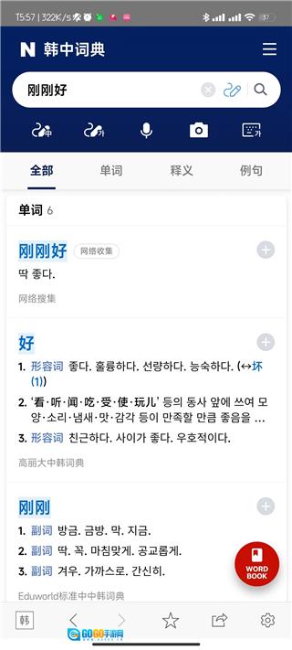 Naver中韩词典最新版能够帮助用户快速查询中文与韩语之间的词汇翻译,提供准确的释义和实用例句。这款应用支持多种查询方式,包括手动输入、语音识别和图像识别,适应不同场景下的查词需求。软件的离线查询功能确保用户在没有网络连接的情况下也能正常使用核心词典服务。