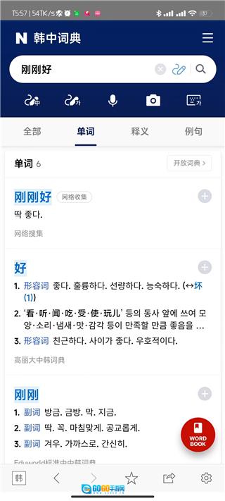 手动查询功能支持中文、韩文及罗马拼音输入,自动匹配最接近的词汇结果。