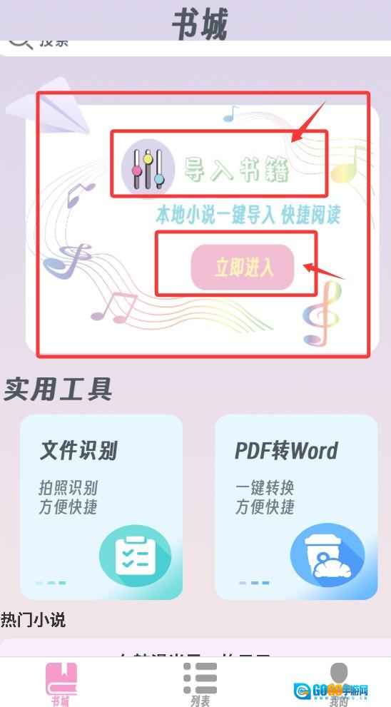 1、打开燃文小说阅读器后,您可通过导入书籍功能加载本地电子书文件或直接站内资源。