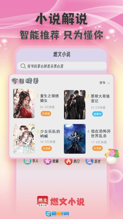 燃文小说阅读器汇集了现代言情、古代言情、玄幻、武侠、校园等多种题材的精品小说,供您自由选择。阅读时可将喜爱作品加入书架,便于随时翻阅,沉浸于故事世界。应用支持个性化设置,允许调整字体、字号、背景及翻页方式,打造专属于您的舒适阅读环境。
