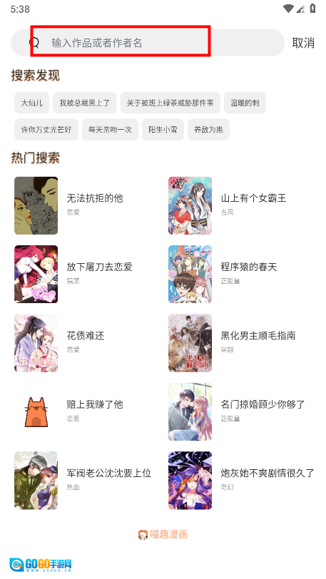 6.如果没能找到,可以在头部搜索框,输入作品名或者作者,可以直接搜索。