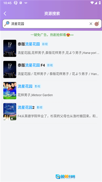 2、接着输入你想查找的资源名称,在搜索结果里找到对应的资源并点击,就能直接观看了。