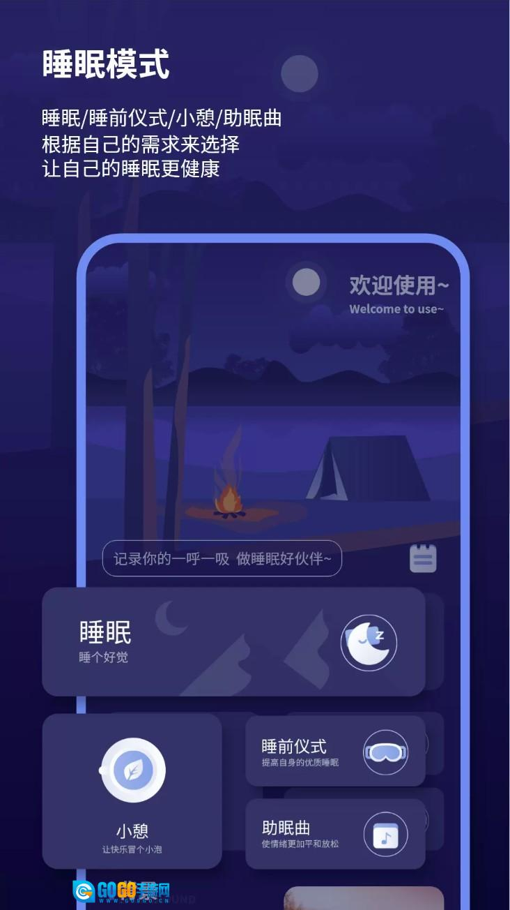3、冥想助眠引导:提供睡前冥想练习内容,帮助用户放松思绪,一键进入舒缓状态以助入眠。
