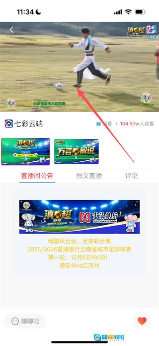 2、在直播页面,点击目标直播,进入直播播放页面。