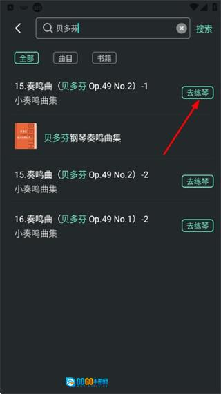 3、在搜索结果里找到你要练习的曲目,点击对应的“去练琴”按钮,就能开启该曲目的练习流程了。