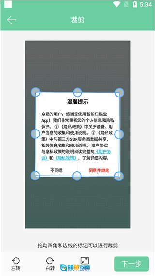 3、拖动图片四角与边线的标记,可对图片进行裁剪,以便针对特定位置开展识别操作。