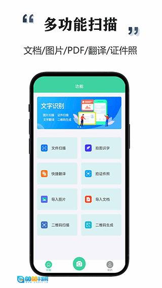 【识图取字】全能扫描大师具备图片识别功能,可直接导入手机中的图片,从中识别并提取文字内容,将其转换为可编辑的文字形式。