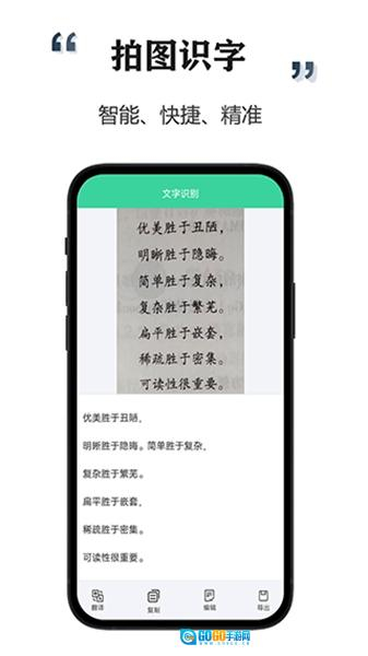 【拍照取字】全能扫描大师具备拍照取字功能,只需用相机拍摄文字,即可实时提取并将其转换为可编辑的文字内容。