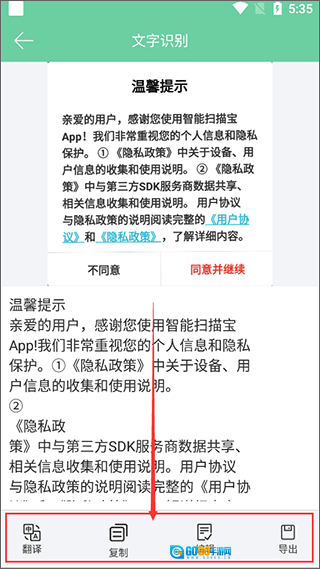 5、识别得到的文字,还可进行翻译、复制、编辑、导出等操作,十分便捷。