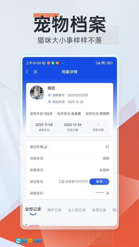 2、智能提醒功能:系统会自动对疫苗接种、健康体检等重要事项进行提醒,为宠物的健康保驾护航。