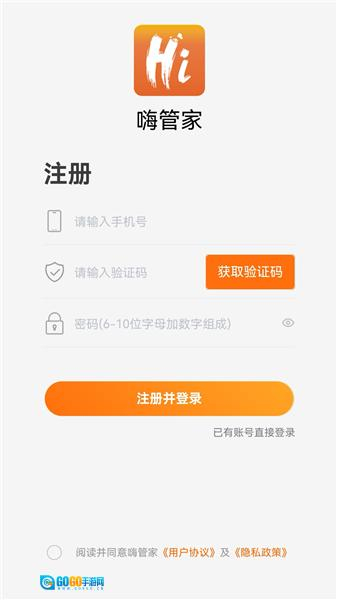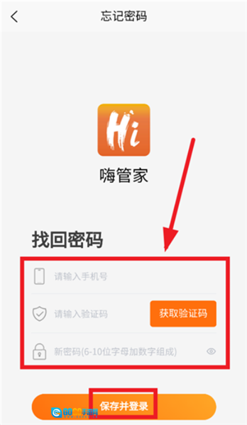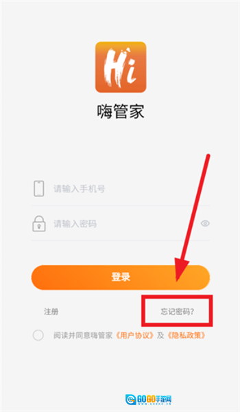 在本站安装并打开嗨管家应用,进入登录页面后,点击“忘记密码”选项。