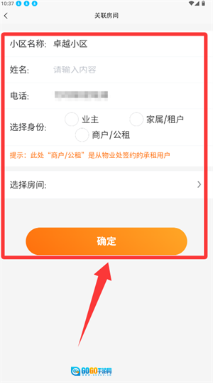 2、填写信息并选择身份房间,点击确定完成绑定。