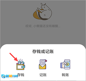 1、启动软件后,点击底部的“小猫”图标,然后在弹出的选项中选择记账或者存钱功能。