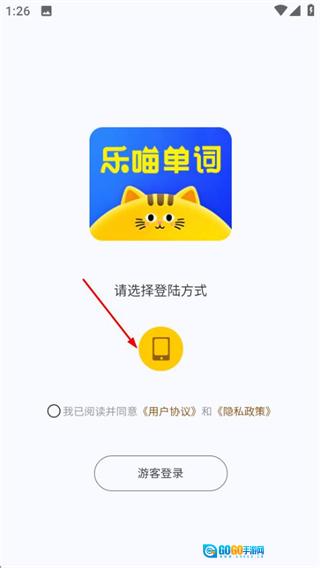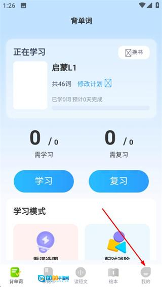 1、打开乐喵单词首页后,点击底部导航栏中的“我的”选项,即可进入登录选择页面。