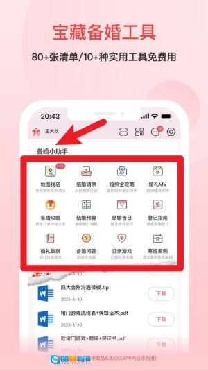 5、备婚工具专区里,80多张清单和10多种实用工具都已备好,这些资源能满足婚礼流程策划以及事项提醒方面的需求。