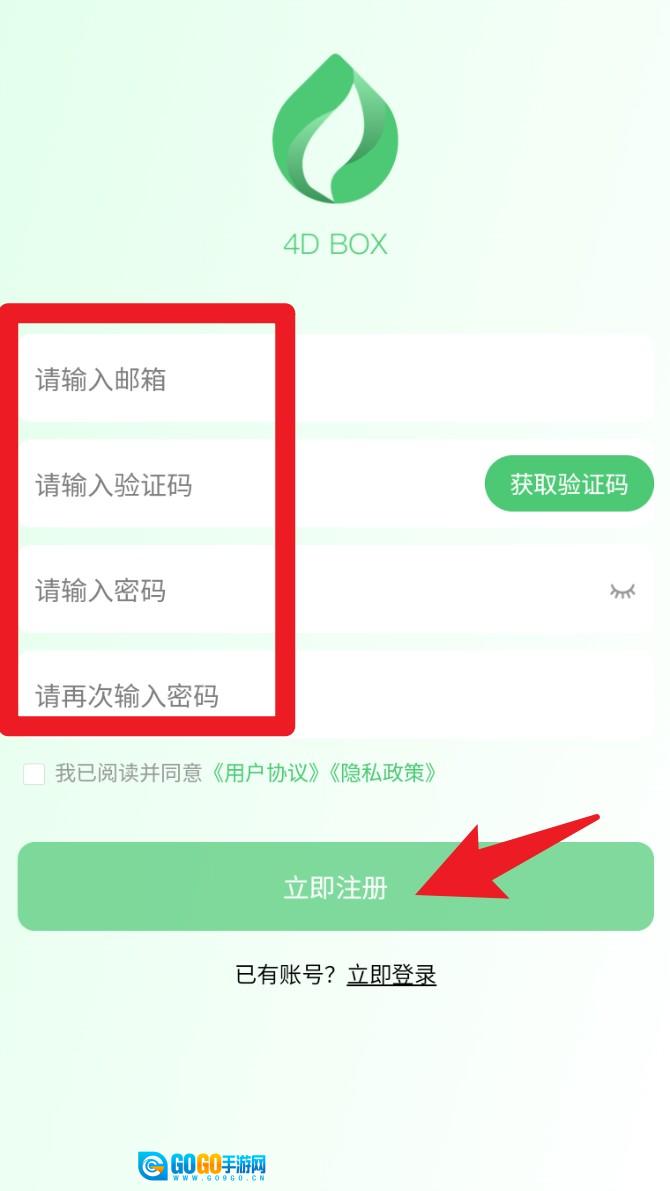 1. 打开App后,点击“立即注册”按钮,依次填写邮箱地址、收到的验证码,并输入两次密码(确保两次输入一致),最后勾选相关协议条款,即可完成注册流程。