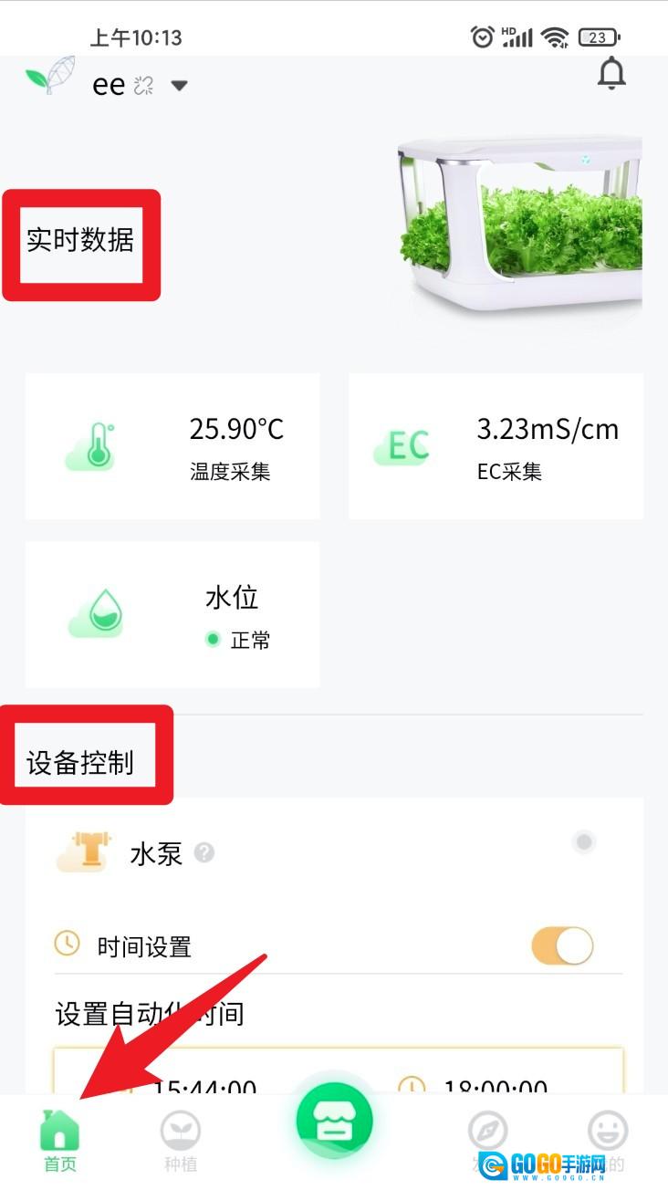 3. 登录成功进入首页后,能查看实时温度、电导率、水位等数据,了解当前种植状况。