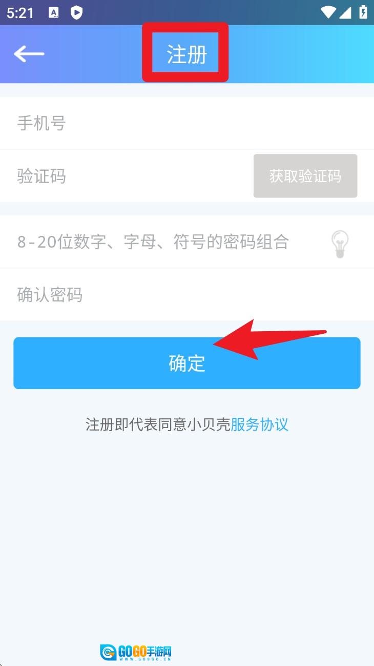 1. 首次使用时,需进入注册页面,依次填写手机号、验证码和密码,阅读相关协议后点击确定按钮,即可完成账号注册流程。
